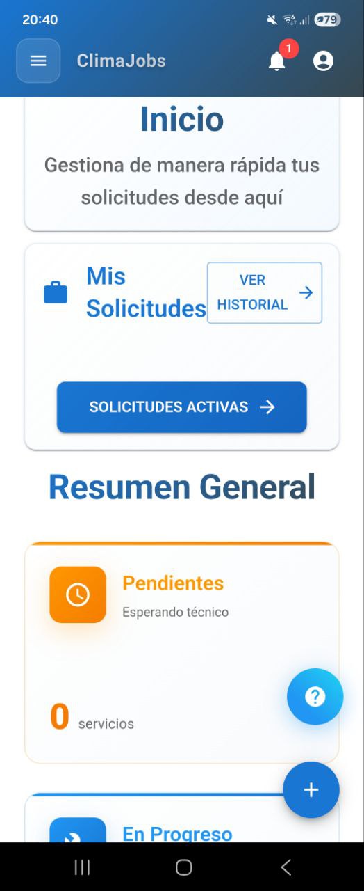 Desde reparaciones urgentes hasta mantenimiento preventivo programado, la app de ClimaJobs te permite gestionar todos tus equipos de climatización en un solo lugar. Registra tus aparatos, recibe alertas de mantenimiento y comunicate directamente con tu técnico a través de nuestro chat integrado.